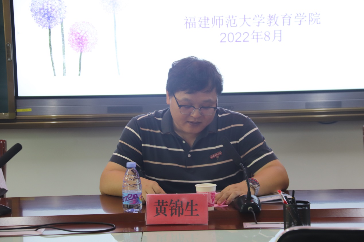 最后,由福建师范大学教育学院党委黄锦生副书记进行总结讲话。黄锦生副书记代表学校对参训学员表示热烈欢迎,并向学员们展示了近年来我校取得的发展成果。同时,黄锦生副书记也为学员们介绍本次培训的前期工作。为做好本次培训,福建师范大学教育学院从方案设计、课程设置、进度安排、专家聘请等方面制定了详细的安排。黄锦生副书记表示,希望学员们把握好本次培训机会,明确目标任务,认真学习培训内容,在互相交流与探讨中提升自身专业素养,从而将所学落实到实践工作中。