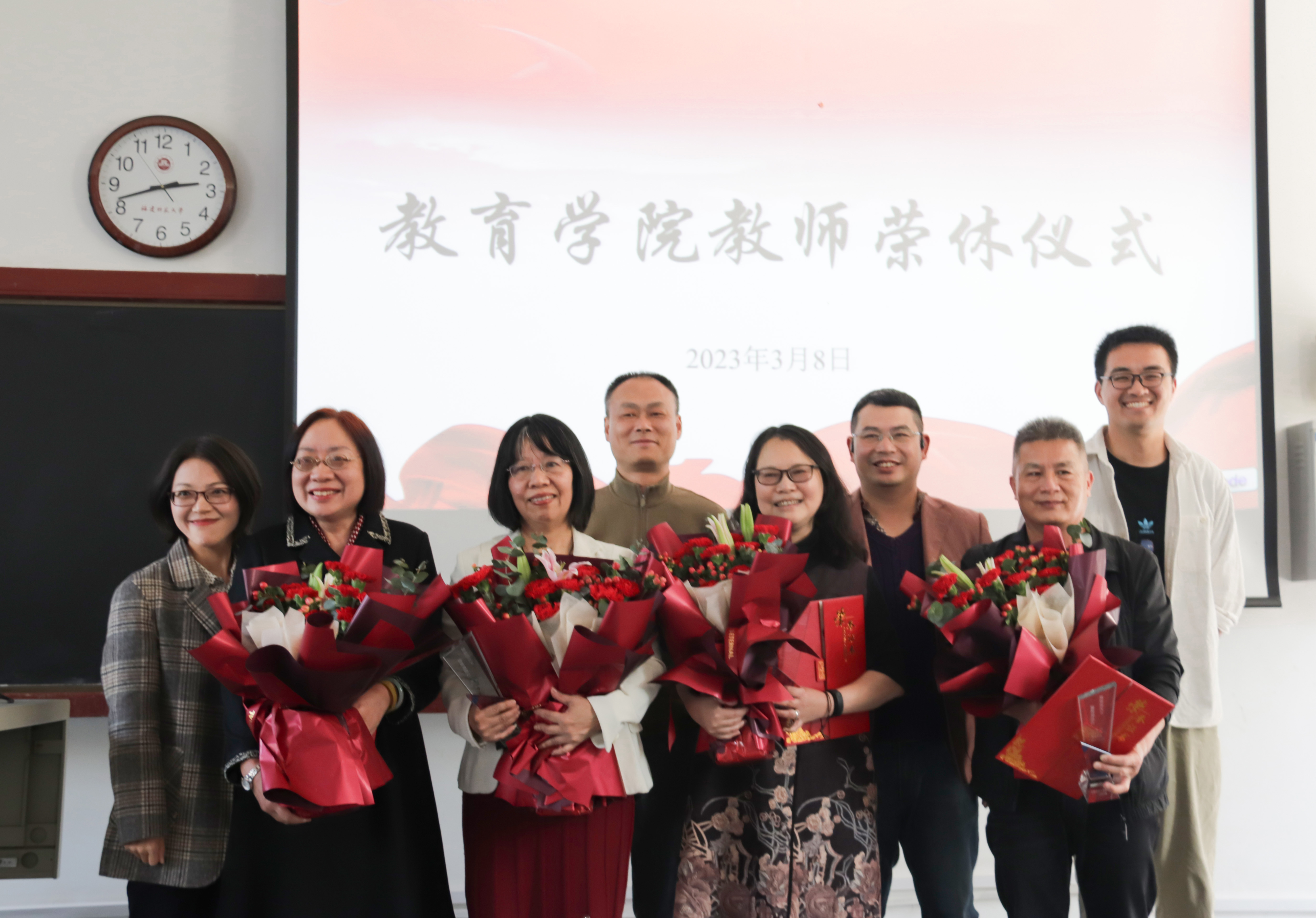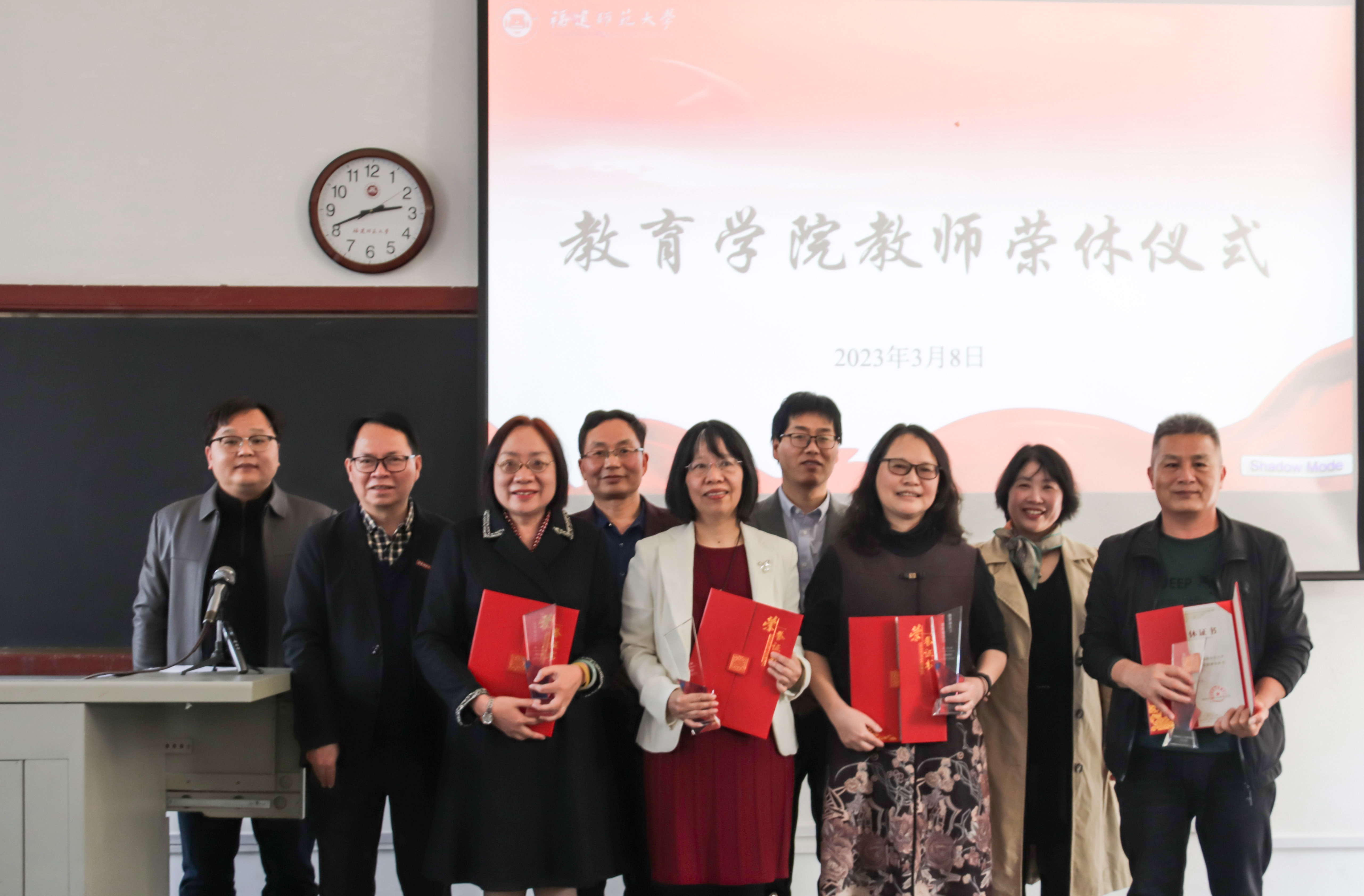 阳光明媚,春暖花开。2023年3月8日下午,我院全体教职员工齐聚在仓山校区文科楼103教室,为林菁教授、黄爱玲教授、吴文芳老师和刘春俤老师隆重举行荣休仪式,学院党委副书记黄锦生主持。