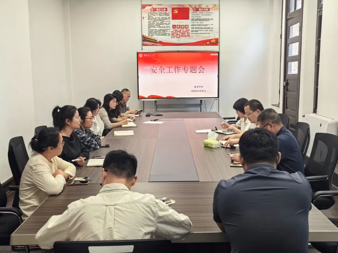 五一假期将至,为强化校园安全管理,确保校园安全稳定,筑牢校园安全防线,4月30日,教育学院召开安全工作会议,并开展安全隐患排查。