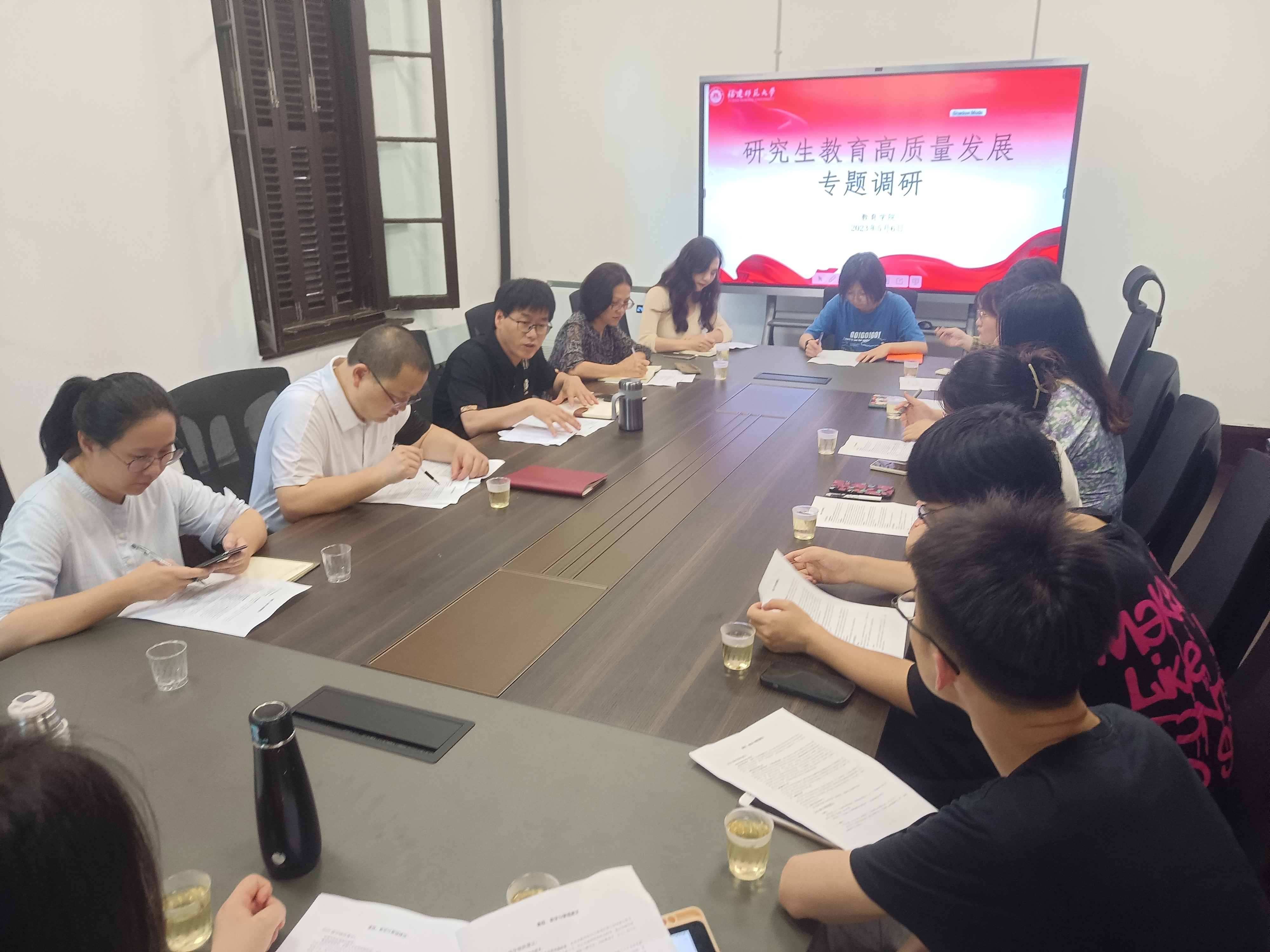 为进一步深化教师与学生的沟通交流,助力学生专业成长,推进研究生教育高质量发展,教育学院于5月6日下午在民主楼召开研究生教育专项调研会。学院党委副书记(主持工作)李巨轸、党委副书记黄锦生、学科与平台建设办公室主任叶玉仙、研究生辅导员洪秋萍、教学秘书胡芳芳及研究生各专业学生代表10余人参加,副院长王伟宜教授主持了会议。