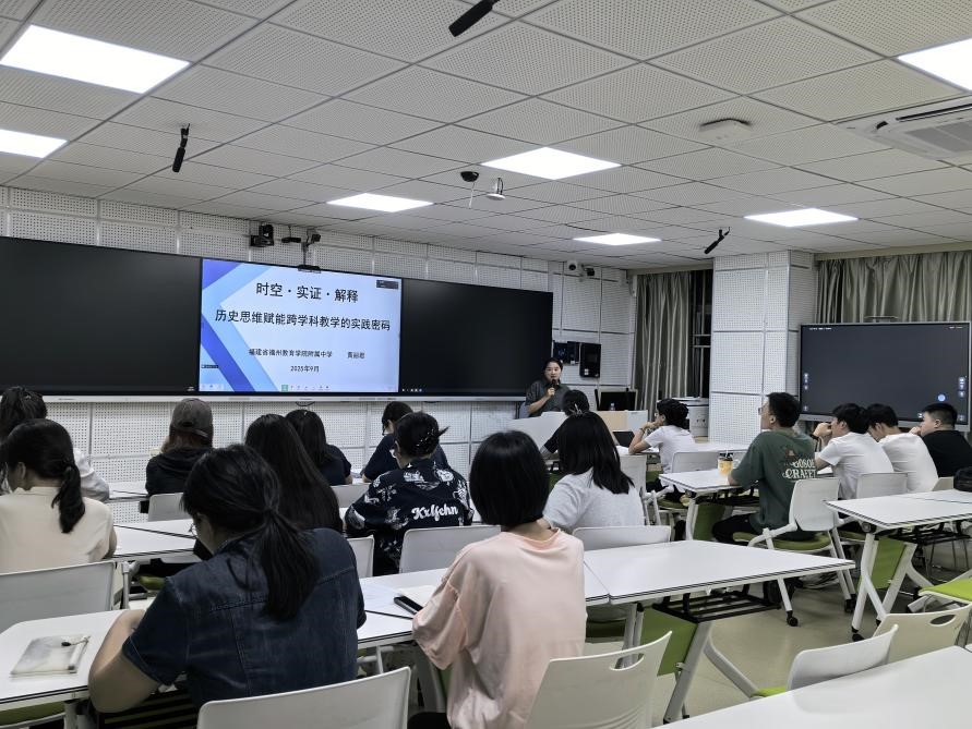 9月3日晚19:00-22:00,福州教育学院附属中学原少先队总辅导员、福建省教育学会教育学委员会理事黄丽君老师为教育学师范生带来学科教学与班级管理方向的系列主题讲座。在《时空·实证·解释——历史思维赋能跨学科教学的实践密码》主题讲座中,她从历史学科核心素养切入,传授跨学科教学技巧。黄老师强调,在跨学科教学中,要注重时空观念的培养,让知识“落地”而非“悬浮”。以语文学科“《三峡》课文学习”与历史学科“北魏时期宏观大背景把握”结合为例,提出教学创设情境。同时,要秉持实证精神,让学生“动手”而非“被动听”,倡导“做中学”实践。此外,还需关注解释逻辑,引导学生“思考”而非“被灌输”,鼓励从多角度、多维度去分析问题,以鸦片战争起因为例,帮助学生理解历史事件的复杂性。通过跨学科主题学习活动,培养学生综合解决问题的能力。
