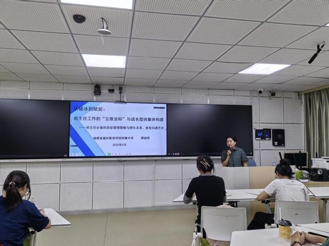 在《从破冰到赋能:班主任工作的“五维坐标”与成长型集体构建》讲座中,黄丽君老师结合自身经验提出,班主任要从温暖集体建设、精准制度管理、自组织培育、坚韧静待细研行和有效家校沟通五方面协同发力,助力学生从执行者逐步向思考者、倡议者、创造者转变。黄丽君老师认为:“班主任工作要做到有温度,丰富学生信息、开展班级活动浸润文化;有精度,以‘公约共制’实现制度与关怀统一;有深度,培育优秀班干队伍;有韧度,耐心助力特殊学生、保障沟通;有效度,通过共情、精准、合作等实现家校有效沟通。”