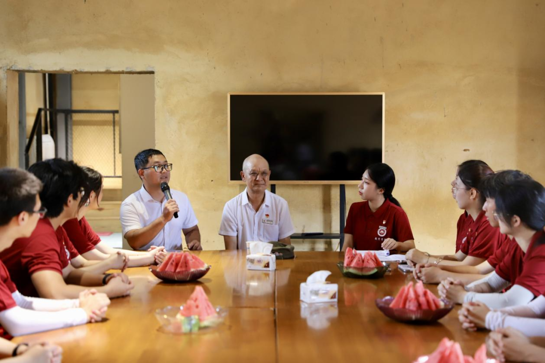 实践队与钟鸣、钟振华父子开展红色传承座谈交流会。钟鸣41年义务讲解,整理珍贵史料、寻访烈士遗骸;其子钟振华放弃城市工作返乡,创新讲解方式并带动红军街电商发展,让红色文化与乡村振兴相融。钟鸣寄语青年人,要读懂红色历史、传播红色精神,将初心化为行动。