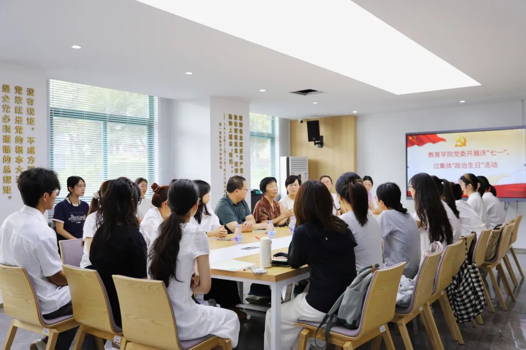 为热烈庆祝“七一”建党节,进一步筑牢党员理想信念根基,赓续红色血脉,7月1日,我院在“育见STAR”福建师范大学“一站式”学生社区开展庆“七一”、过集体“政治生日”活动。学院党委书记李巨轸,党委副书记赵碧山,校老艺协会长黄标阳,团委书记连萍丽,2023级本科生辅导员廖丽兰,新一批预备党员及党员代表参与本次活动。活动由院党委组织员蔡虹主持。