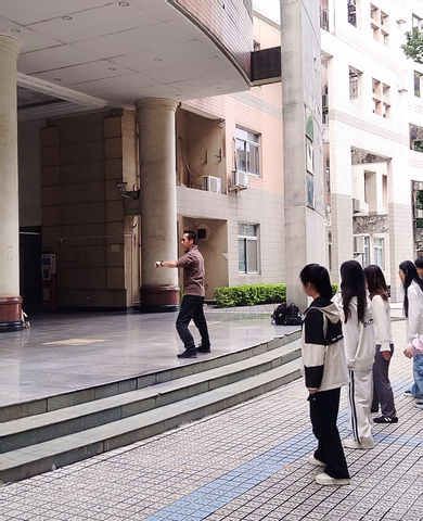 课程伊始,李教授通过生动的讲述和丰富的历史资料,介绍鸣鹤拳·械的源流与文化内涵。随后,他亲自示范部分招式,动作刚劲、连贯流畅,引来同学们的阵阵赞叹。示范中,李教授特别强调招式之间的衔接与应对,为接下来的对练环节打下基础。
