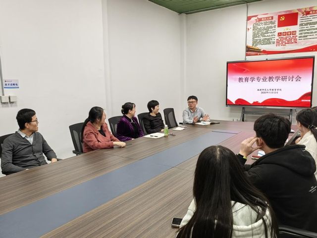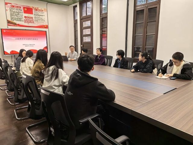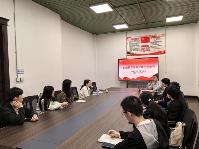 福建师范大学教育学院2023级教育学专业师生座谈、2024级教育学专业师生座谈及教育学专业教学研讨会于2025年11月12日下午14:30-17:30,在民主楼109召开。教育学系教师、2023级教育学本科生代表、2024级教育学本科生代表参加会议,会议由教育学院副系主任杨来恩老师主持。