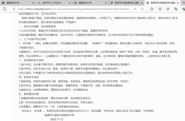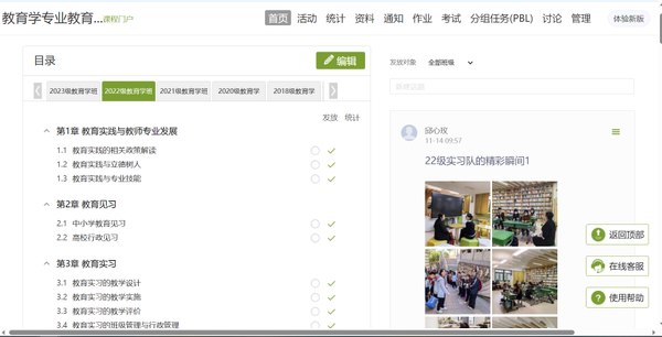此外,由分管领导及专任教师等组成“教育学专业师范生教育实习指导委员会”的领导老师们,通过电话访谈、微信视频交流等方式对分散实习学生进行检查与指导,并通过超星云平台对全体实习生加强安全教育与实时管理。