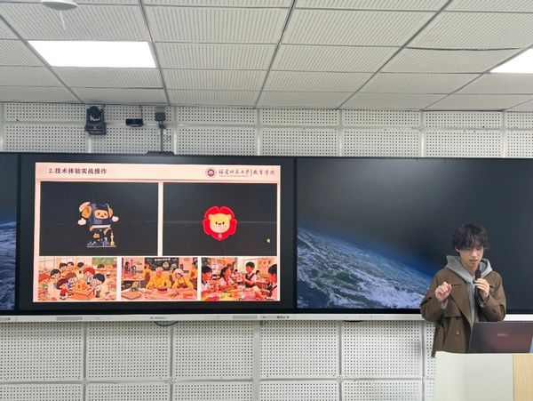 活动伊始,2023级教育技术学未来卓越教师班的学员们率先分享了在华东师范大学的研修成果。他们详细分享了研修期间专家学者与一线教师的主题讲座、精品授课内容,让现场听众清晰明确了未来教师“教学的设计者、引导者、评价者”的多元角色定位,同时厘清了人机协同教学素养的核心内涵。随后,学员们现场演示了智能体搭建、工作流设计等实操内容,直观让在场听众感受到人工智能技术在教育领域的无限应用可能;此外,他们还分享了走访华东师范大学数智空间、科大讯飞人工智能体验馆等标杆场景的见闻,生动呈现了教育数字化的前沿实践成果,让大家深切体会到技术赋能教育的蓬勃活力。