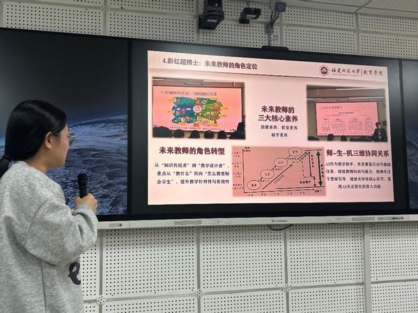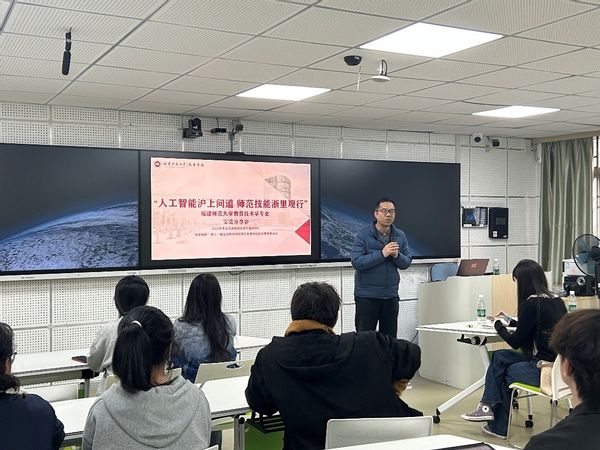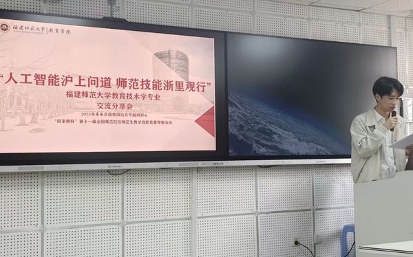2025年11月,2023级教育技术学未来卓越教师班先后走进华东师范大学、浙江师范大学,深入研习人工智能赋能教育的前沿实践,同时现场观摩 “田家炳杯” 全国师范生教学技能竞赛。为深化研修与观摩成效,切实转化学习成果,12月5日,福建师范大学教育技术学专业“人工智能沪上问道,师范技能浙里观行”交流分享会,在仓山校区田家炳楼 507 智慧教室成功举办。分享会由2023级教育技术学班林震霆主持,教育技术学专业各年级学生积极参与,教育技术学专业陈凤斌老师、斩获“田家炳杯”第十一届全国师范院校师范生教学技能竞赛全国一等奖的袁茗迪也应邀出席。