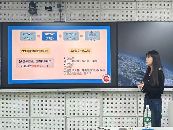 紧接着,2022 级学生袁茗迪带来 “田家炳杯” 竞赛备赛经验分享。她系统拆解了竞赛的核心任务,并针对性给出无网络环境下的备赛时间分配策略、PPT 制作原则以及即席讲演结构技巧。同时,她还特别叮嘱大家规避备赛中的常见失误。她的分享不仅让在场听众见证了一等奖荣誉的荣光,更深刻体会到一堂优质课背后所付出的反复打磨、精心设计,以及一名卓越师范生对教学事业的敬畏之心与赤诚热爱。