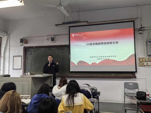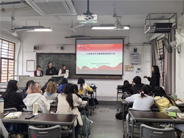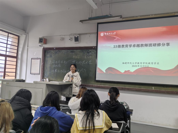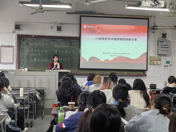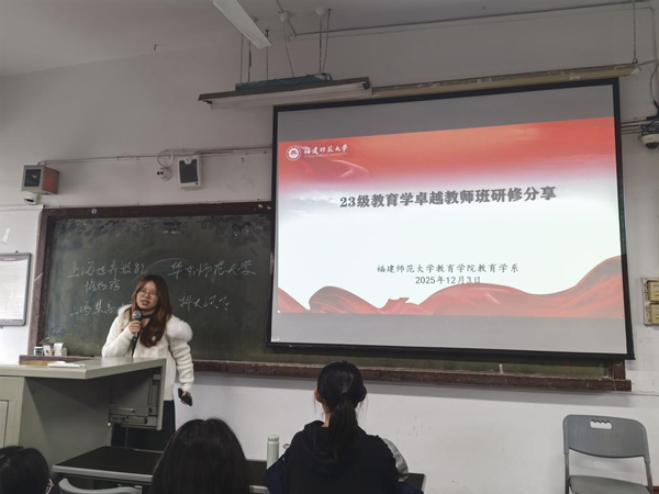 2023级卓越教师班华东师大研修成果分享会于2025年12月3日在文科楼501教室举行。会议由教育学系副主任、卓越教师班校内导师邱心玫主持,2023级教育学班部分同学及2024级教育学班全体同学参加。2023级卓越教师班成员林佳欣、张嘉蓉、张雅玥、林灵颖围绕“教育数字化与AI应用”主题,通过前沿案例解析与实用工具推荐,系统展示了教育技术融合的实践路径,有效激发了在场教育学专业本科生对教育创新议题的深入思考。