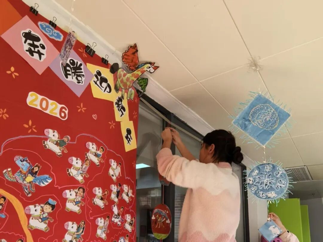 活动筹备阶段,团支部书记吉嘉琪主动对接幼儿园负责人,就场地规划、活动项目设置等细节进行反复沟通。活动正式启动后,支部成员分批次于26日、29日进入各班,与带班老师精准对接。根据活动安排,成员们分为两大行动组:一组前往幼儿园操场,以“大朋友”的身份与小朋友一对一结对,陪伴孩子们开展各项运动练习。过程中,支部成员时刻关注幼儿的身体状态与情绪变化,用温柔的鼓励与耐心的指导,让孩子们在欢声笑语中提升运动技能;同时紧盯活动现场,制止危险行为,全力保障练习过程安全有序。另一组则留守班级,支部成员们分工协作,贴新年装饰、摆趣味道具,精心打造出洋溢着节日氛围的童趣运动乐园。