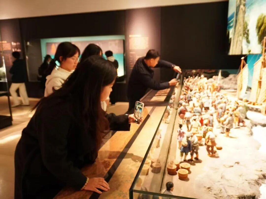 活动前期,团支部提前约定参观时段并对接专业讲解员,为沉浸式参馆做好充分准备。1月11日,支部成员齐聚福建省博物院进行参观。参观过程中,支部成员跟随讲解穿梭于展厅,从宋代谷仓罐的童趣造型,到五代闽国陶俑的生动神态,在文物中挖掘幼儿文化启蒙的教育元素。