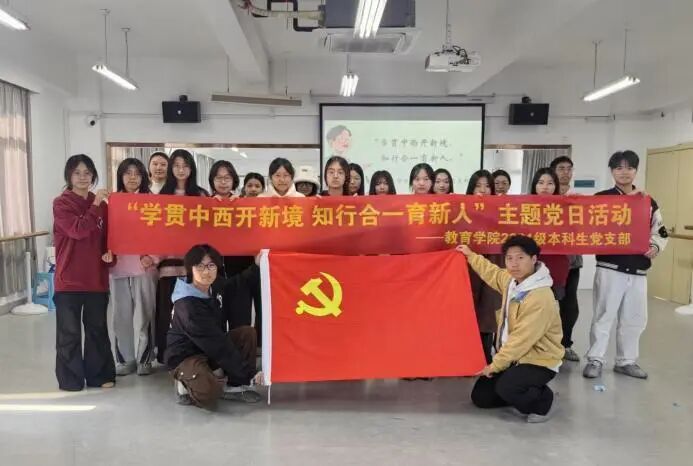 为深入弘扬教育家精神,激励师范生传承教育初心,勇担时代使命,12月26日上午,教育学院2024级本科生党支部组织开展“学贯中西开新境,知行合一育新人”主题党日活动。活动聚焦于中国教育史上的重要人物蔡元培先生,通过理论学习和情境体验相结合的方式,引导支部成员在历史回望中感悟教育家精神的时代价值,在互动实践中体悟教育智慧,在知行合一中筑牢育人初心。