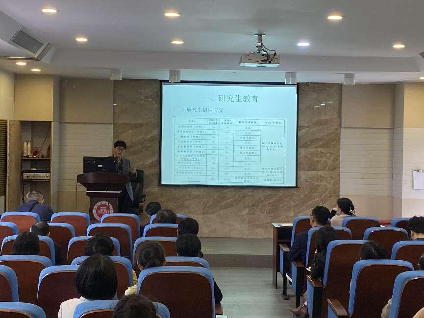 接着,王伟宜副院长首先对研究生、学位点级科研主要工作进行了简单汇报。其次,针对教育硕士周期性评估以及教育学一级学科博士点专项评估的整体情况进行汇报。最后,对课题申报情况、近期课题申报通知以及近期拟开展的工作进行梳理和动员,鼓励全体教师要积极申报各类课题,认真打磨,实现科研育人。