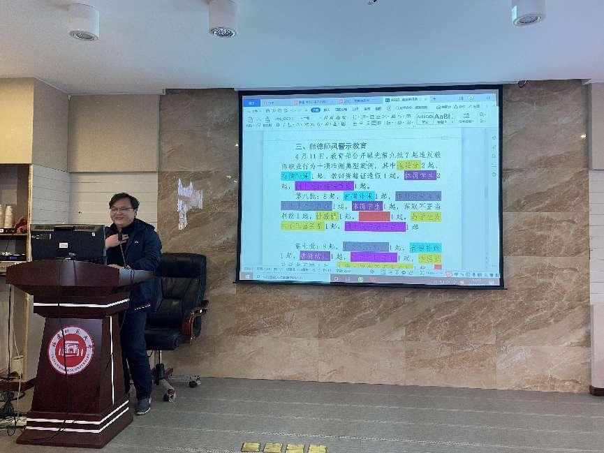 会上,学院党委副书记黄锦生首先对教育学院总体框架、学院班子成员及行政人员安排做了简单说明。其次,强调要做好疫情防控工作,严格执行人员出入管理措施,持续加强师生健康管理,严格执行校园“控流量”措施。再次,对师德师风开展警示教育,通过对师风师风问题进行归类梳理,进一步要求全体教职工要加强师德师风建设,强化底线意识、规矩意识和自律意识,从思想上和行动上提高师德师风防线。最后,对毕业生就业问题做了分析。他强调目前就业形势严峻,要全方位、多层次了解学生所需、所惑,举全院之力推进毕业生更充分更高质量就业。
